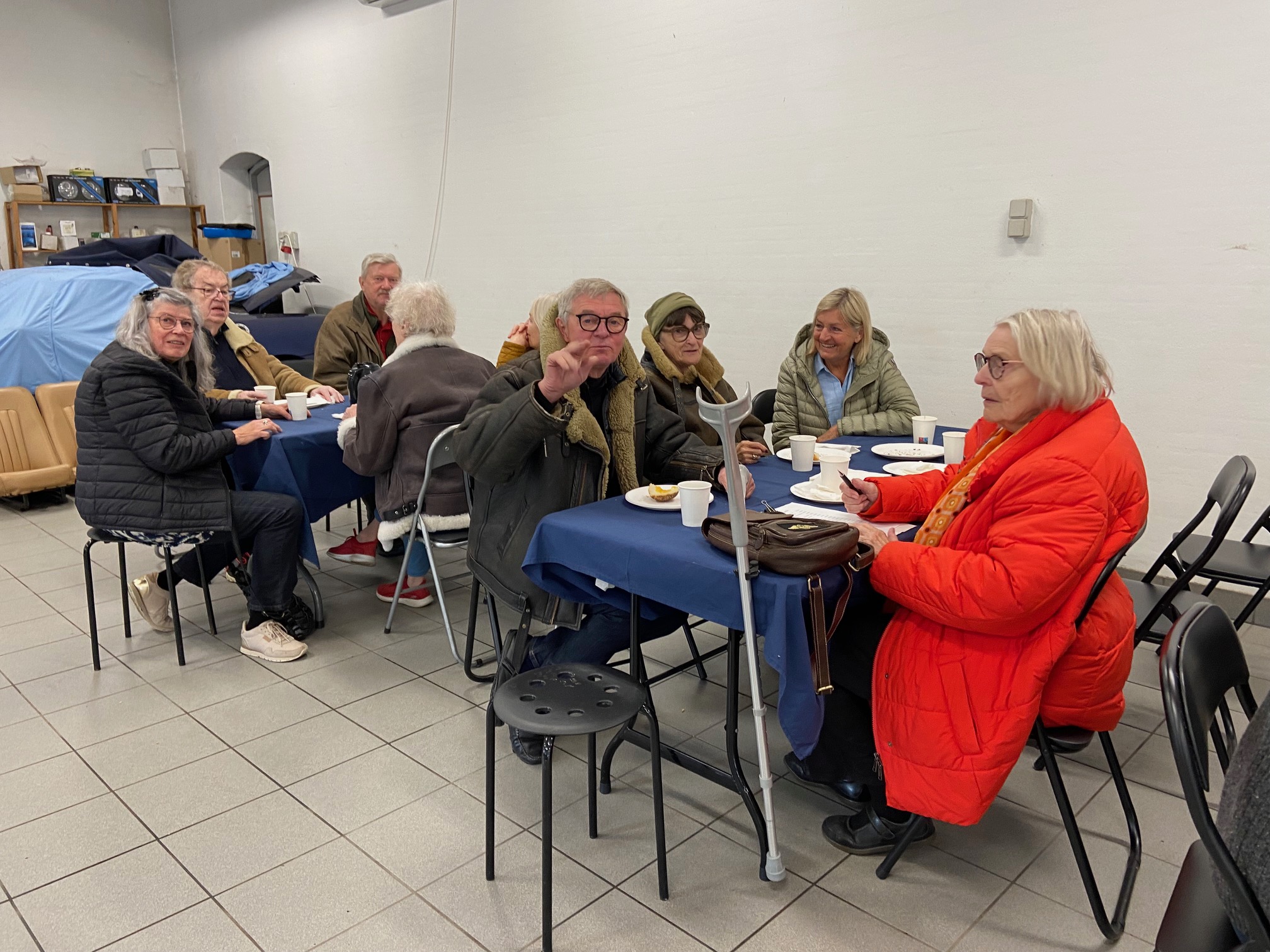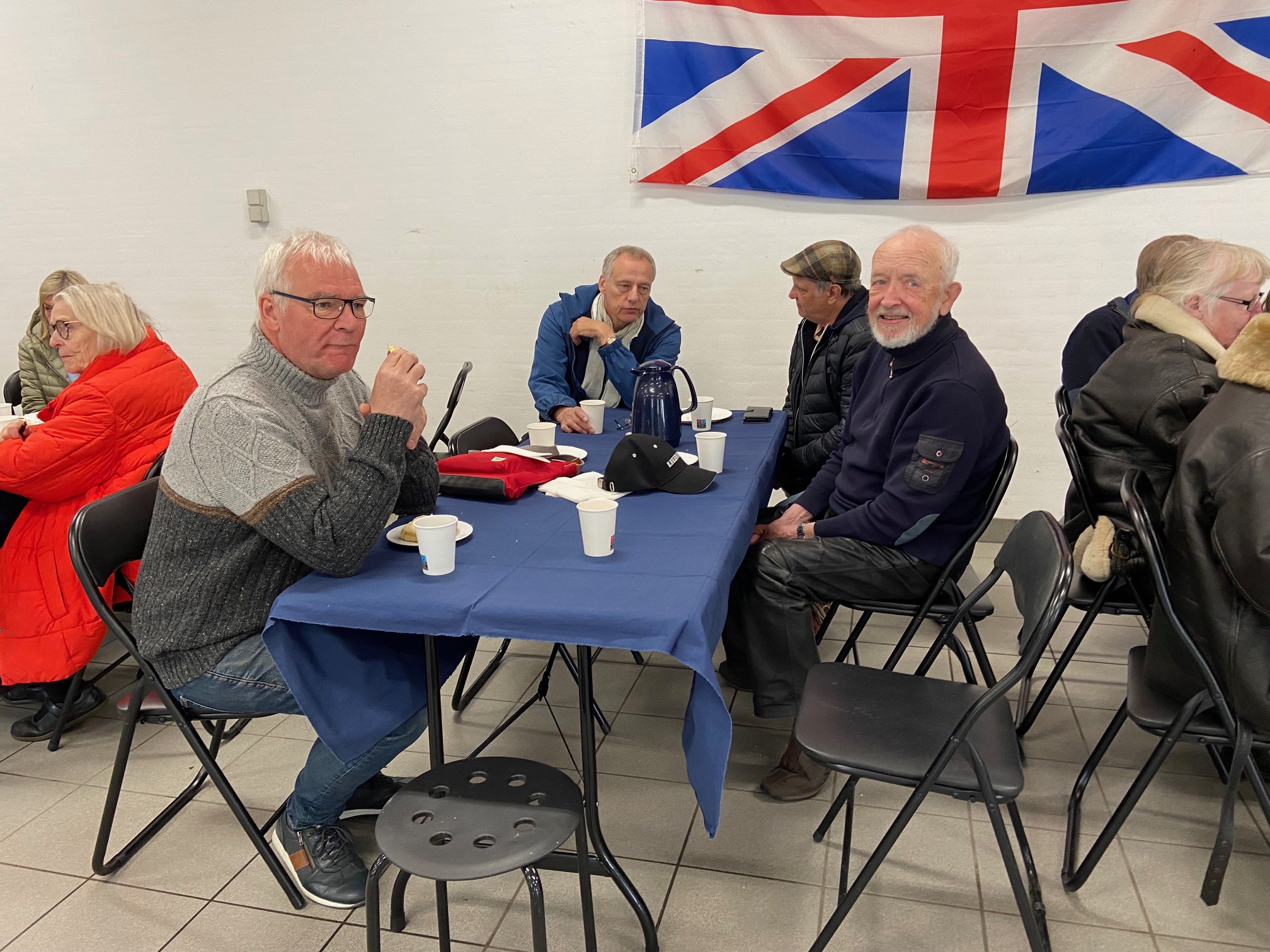SÅ TIL SAGEN. Lørdag klokken 9:30 mødtes vi til morgenkaffe hos Jesper i Hemstok. Her var dejlig kaffe og te, rundstykker med ost, pålæg og marmelade og wienerbasser. Jesper er altid så venlig at lægge hus til. det var et herligt forårsvejr, næsten sommerlig, og vi kunne se ud over de grønne marker. Vi ventede noget på dem der kom Nordenfjords fra, de var rendt ind i noget vejarbejde på motorvejen.