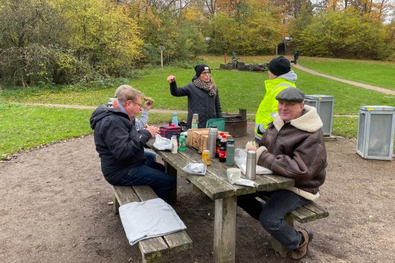 Vi var 4 biler afsted, og som annoncret var det en "termokande og mnadpakketur" hvor vi spiste vores frokost ved Buresø.