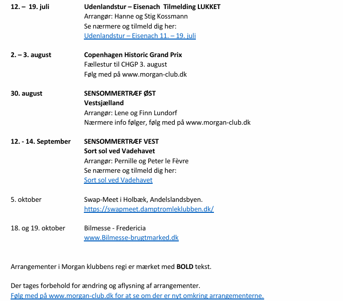 Som tidligere arrangerer Morgan Club Denmark mulighed for fælleskørsel til CHGP - Copenhagen Historic Grand Prix. Læs meget mere om CHGP her Vi