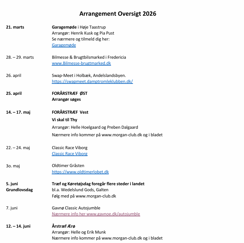 Hermed 1. udgave af Aktivitets kalenderen for 2026 Bemærk at ikke alle datoer er bekræftet, og vi søger arrangør til Forårstræf Øst og Sensommertræ