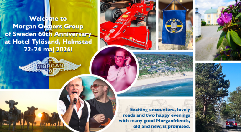 Ja, så er der lidt nyt fra det store udland, vores svenske søsterklub Morgan Owners Club Of Sweden bliver 60 år i 2026. Det har vi nu vist længe, m